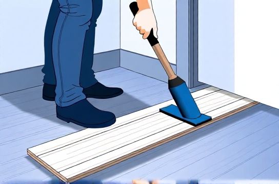Steps: 1. Locate the exact squeak zone (walk slowly; mark with tape). 2. Use utility knife to gently separate two adjacent planks—just enough to insert nozzle (1–2mm gap). 3. Inject adhesive in 2–3 spots along the seam (approx. ½ tsp per spot). 4. Weight the area with books or sandbags for 24 hours.